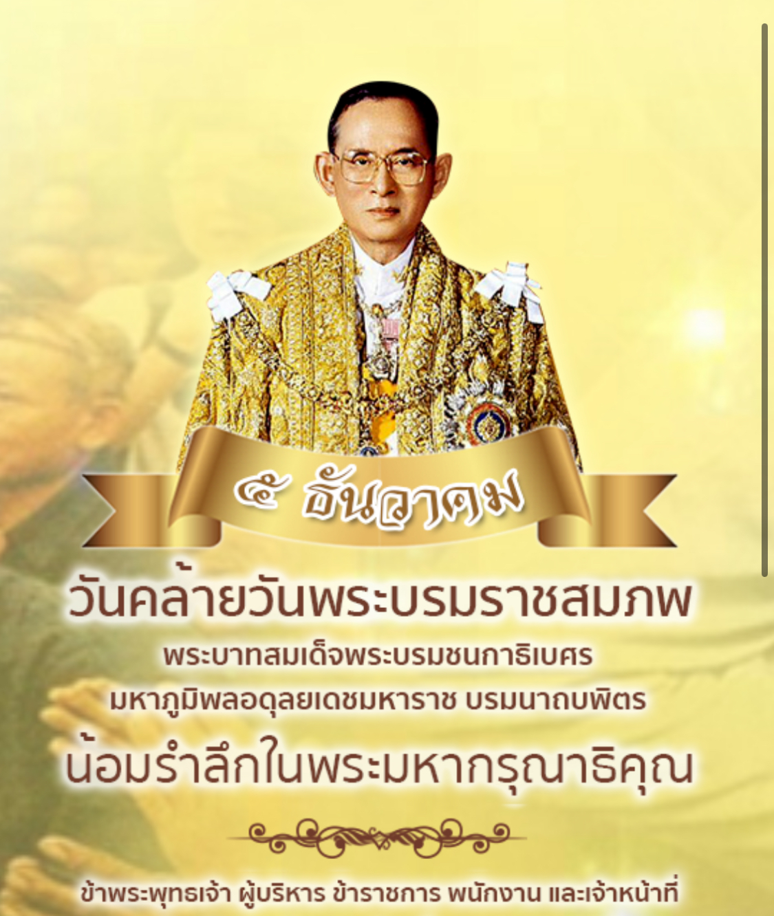 5 ธันวาคม วันคล้ายวันพระบรมราชสมภพ พระบาทสมเด็จสมเด็จพระบรมชนกาธิเบศร มหาภูมิพลอดุลยเดชมหาราช บรมนาถบพิตร น้อมสำนึกในพระมหากรุณาธิคุณลันพ้นหาที่สุดมิได้