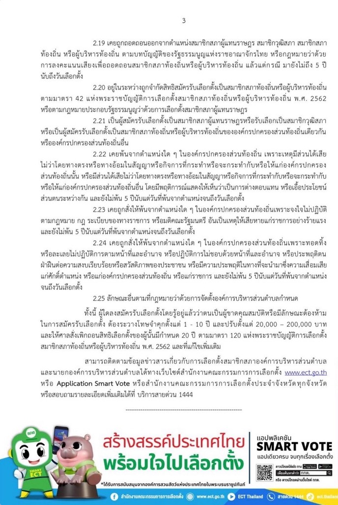 ข่าวประชาสัมพันธ์ผู้ที่จะประสงค์ลงสมัคร อบต. อย่าลืมตรวจสอบคุณสมบัติและลักษณะต้องห้ามของตนเองก่อนลงสมัครเลือกตั้ง สมาชิกองค์การบริหารส่วนตำบลและนายกองค์การบริหารส่วนตำบล