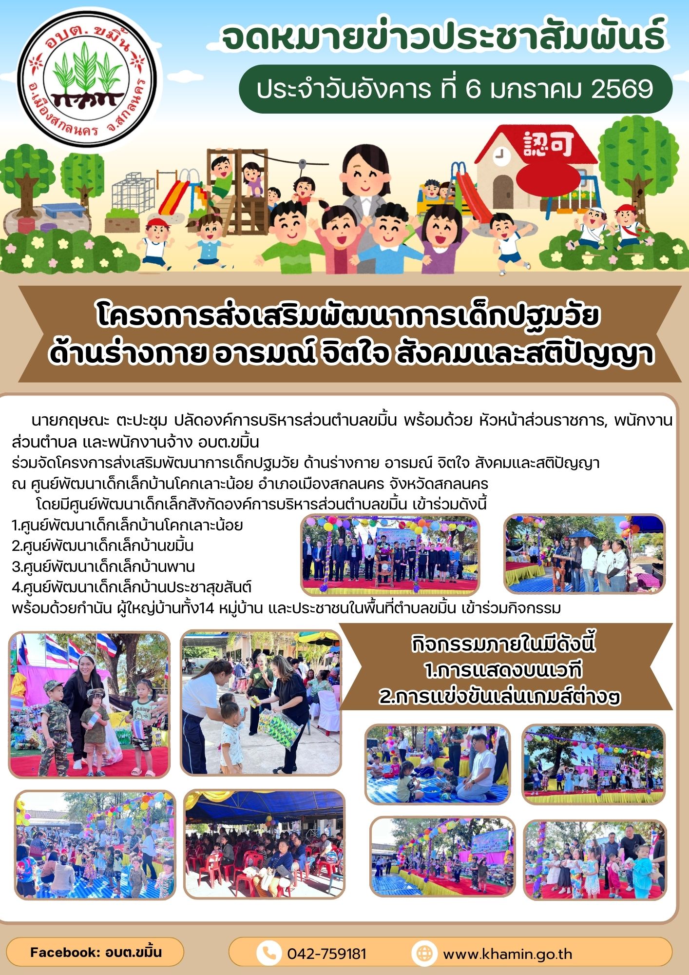 โดยมีศูนย์พัฒนาเด็กเล็กสังกัดองค์การบริหารส่วนตำบลขมิ้น เข้าร่วมดังนี้