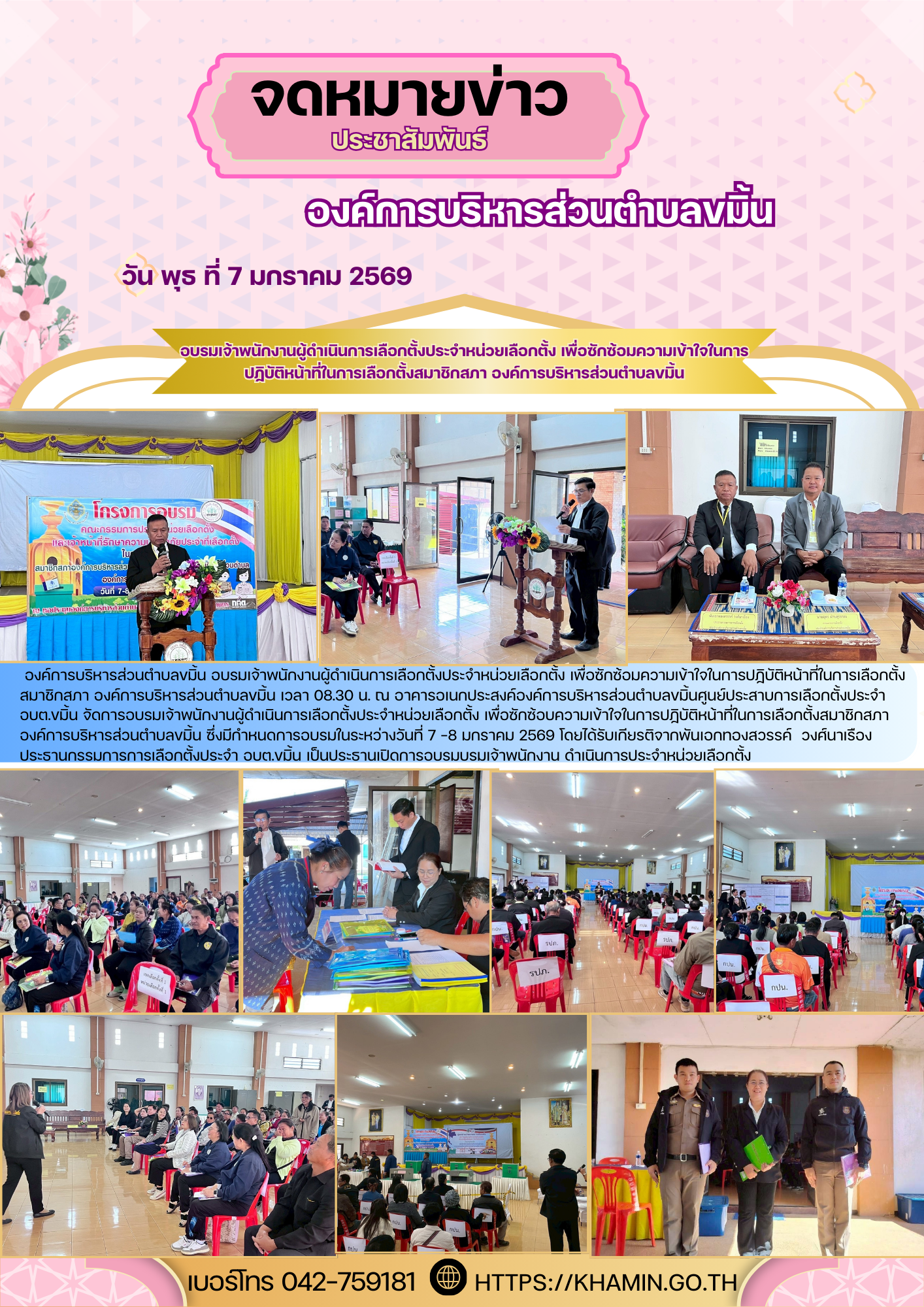 องค์การบริหารส่วนตำบลขมิ้น อบรมเจ้าพนักงานผู้ดำเนินการเลือกตั้งประจำหน่วยเลือกตั้ง เพื่อซักซ้อมความเข้าใจในการปฏิบัติหน้าที่ในการเลือกตั้งสมาชิกสภา องค์การบริหารส่วนตำบลขมิ้น เวลา 08.30 น. ณ อาคารอเนกประสงค์องค์การบริหารส่วนตำบลขมิ้นศูนย์ประสาบการเลือกตั้งประจำ อบต.ขมิ้น จัดการอบรมเจ้าพนักงานผู้ดำเนินการเลือกตั้งประจำหน่วยเลือกตั้ง เพื่อซักซ้อบความเข้าใจในการปฏิบัติหน้าที่ในการเลือกตั้งสมาชิกสภาองค์การบริหารส่วนตำบลขมิ้น ซึ่งมีกำหนดการอบรมในระหว่างวันที่ 7 -8 มกราคม 2569