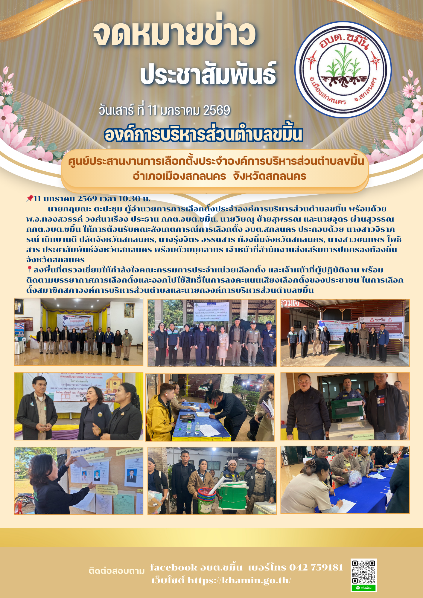 📍ลงพื้นที่ตรวจเยี่ยมให้กำลังใจคณะกรรมการประจำหน่วยเลือกตั้ง และเจ้าหน้าที่ผู้ปฏิบัติงาน พร้อมติดตามบรรยากาศการเลือกตั้งและออกไปใช้สิทธิ์ในการลงคะแนนเสียงเลือกตั้งของประชาชน ในการเลือกตั้งสมาชิกสภาองค์การบริหารส่วนตำบลและนายกองค์การบริหารส่วนตำบลขมิ้น