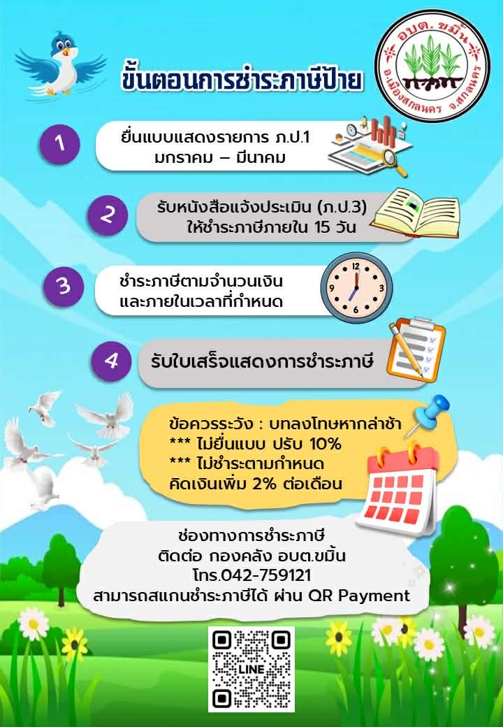 อบต.ขมิ้น แจ้งให้ยื่นแบบแสดงรายการและชำระภาษีป้าย ประจำปี2569 อำเภอเมืองสกลนคร จังหวัดสกลนคร