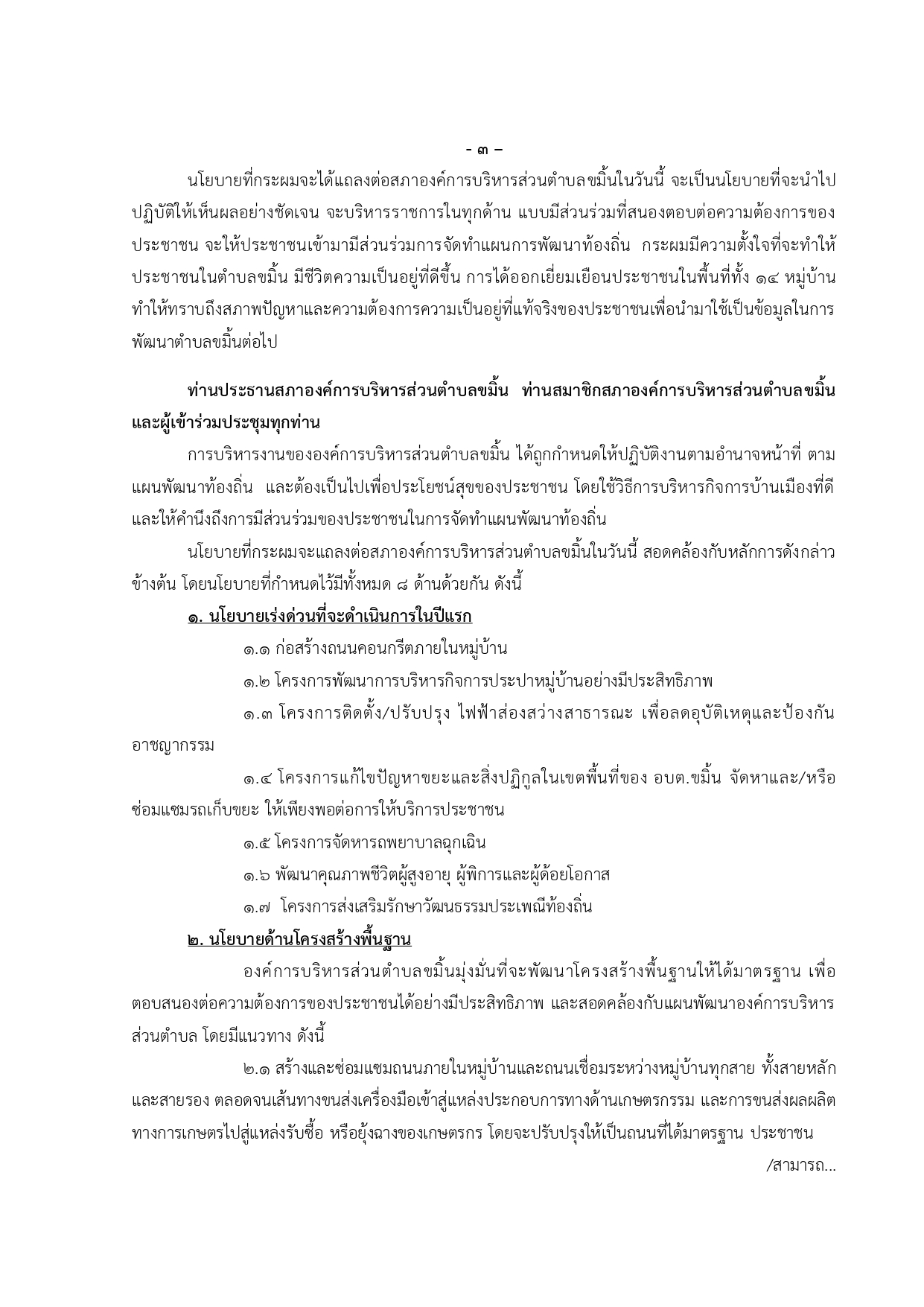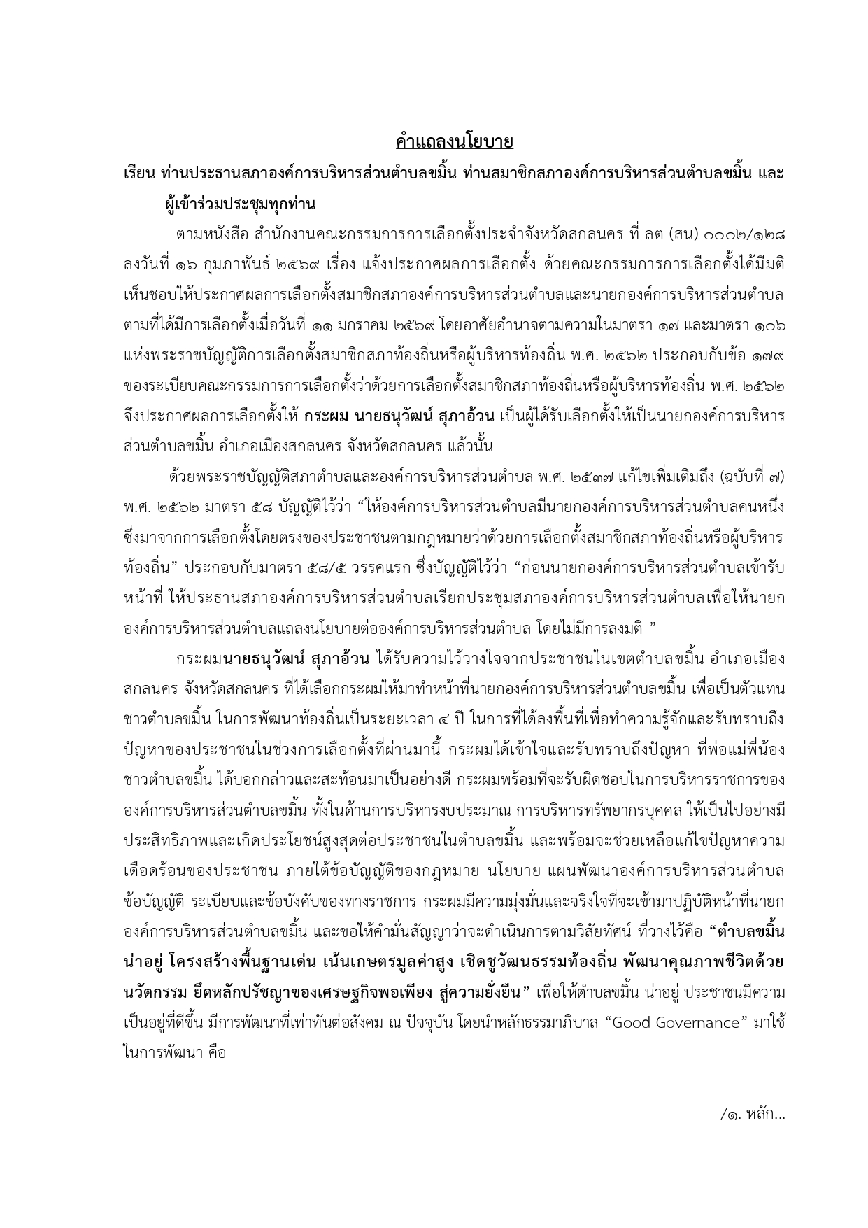 คำแถลงนโยบาย นายก อบต.ขมิ้น