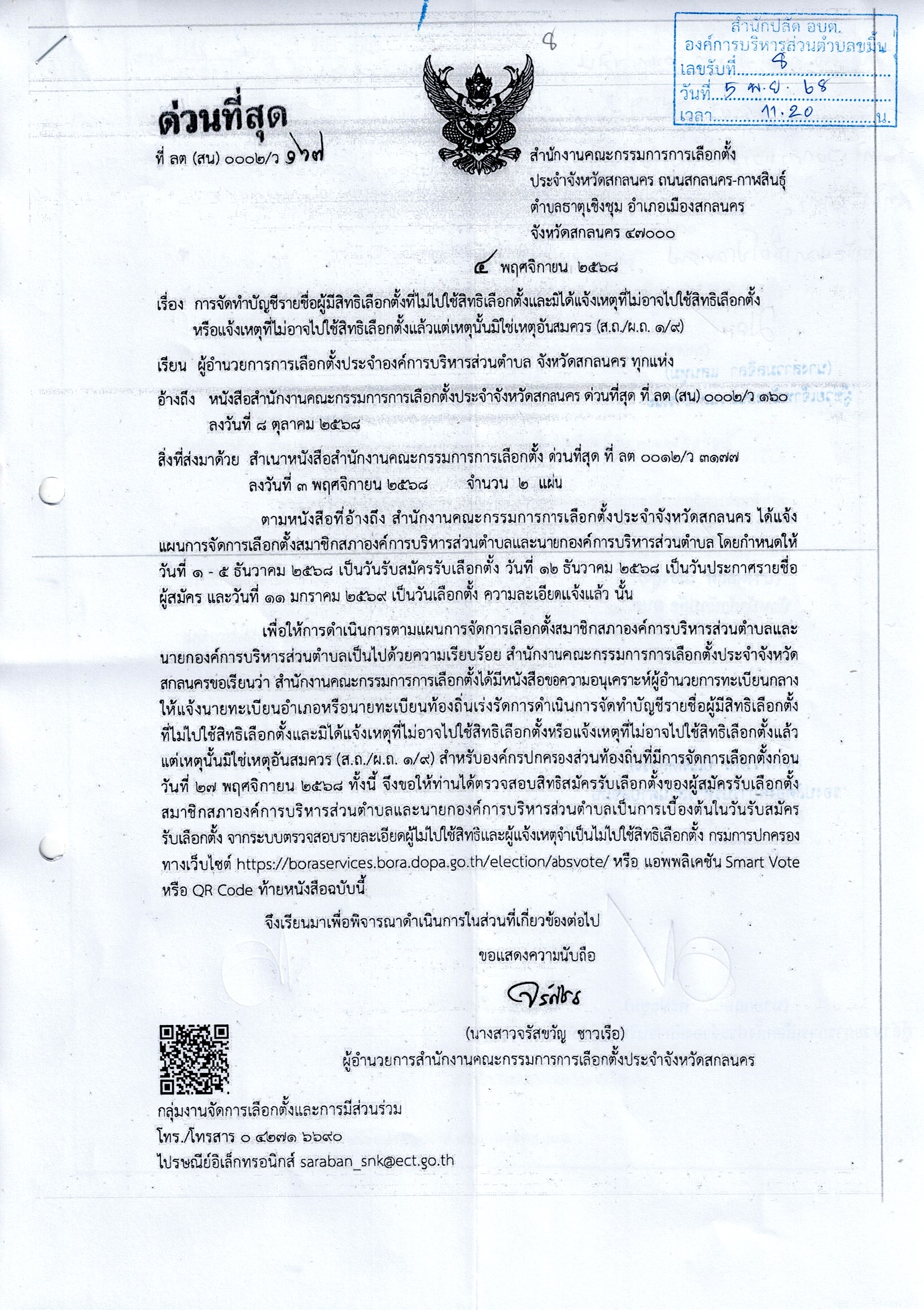 ประกาศประชาสัมพันธ์ เรื่องการจัดทำบัญชีรายชื่อผู้มีสิทธิเลือกตั้งที่ไม่ไปใช้สิทธิเลือกตั้งและมิได้แจ้งเหตุที่ไม่อาจไปใช้สิทธิเลือกตั้งหรือแจ้งเหตุที่ไม่อาจไปใช้สิทธิเลือกตั้งแล้วแต่เหตุนั้นมิใช่เหตุอันสมควร (ส.ถ./ผ.ถ.1/9)