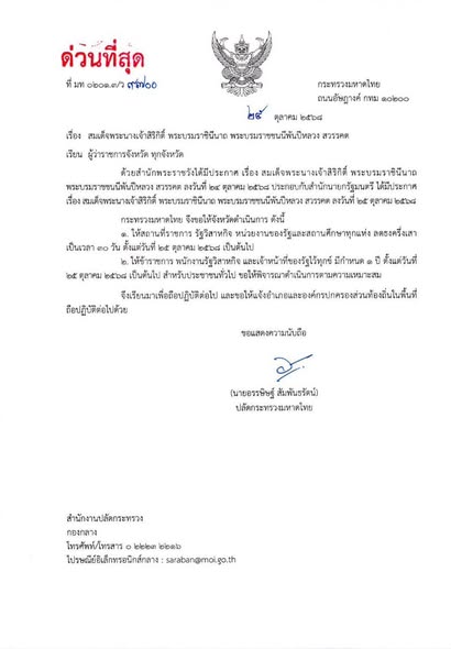 เรื่อง สมเด็จพระนางเจ้าสิริกิติ์ พระบรมราชินีนาถพระบรมราชชนนีพันปีหลวง สวรรคต
